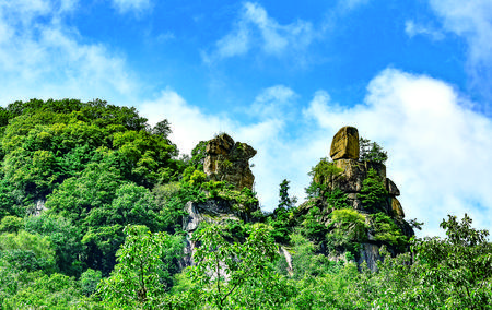 麥積山景區(qū)風(fēng)景優(yōu)美,其中“麥積煙雨”為天水十大景觀之一,那如仙如幻的美景使游人為之陶醉。清翰林邑人吳西川在《麥積煙雨》詩中贊曰:“最宜秋雨后,兼愛暮時煙”,可見煙雨之撩人。登上麥積山石窟的“散花樓”俯瞰,方圓百里林海茫茫,如詩如畫,滿目生碧,氣勢磅礴。如將色彩繽紛的花瓣騰空撒下,隨著氣流繚繞而上,可出現(xiàn)“天女散花”般的迷人景象,使人頓生飄飄欲仙的感覺。麥積山石窟開鑿在距地面80米的懸崖絕壁上,洞窟“密如蜂房”,棧道“凌空穿云”,其驚險陡峻為世罕見。