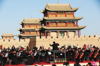 近日,大型交響樂《長城》于中秋、國慶“雙節(jié)”黃金周在國家5A級景區(qū)嘉峪關(guān)關(guān)城激情上演,雄渾的交響曲不僅使得古老絲路精神再次煥發(fā)勃勃生機(jī),更用動人的旋律再一次解讀了“一帶一路”倡議和國家向西開放戰(zhàn)略給甘肅帶來的重大機(jī)遇,闡釋了“交響絲路、如意甘肅”豐富而嶄新的意蘊(yùn)。