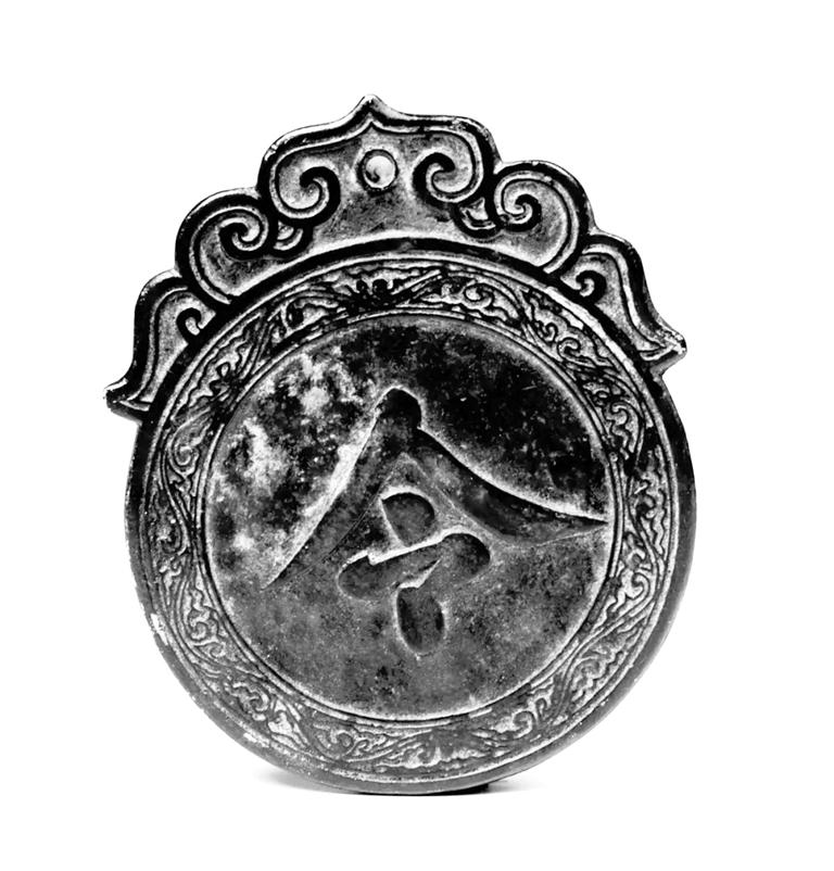 夜巡牌,高14厘米,寬11.5厘米,厚0.5厘米,紅銅制作。大體呈圓形,上面是狀如柿蒂形的鈕,鈕上雕刻有卷云紋,有一孔,用來穿繩。牌的正面為一楷書“令”字,字外三道弦紋,夾一圈卷云紋,背面為“肅字捌佰肆拾伍號”“永昌衛(wèi)指揮使司夜訓牌”。