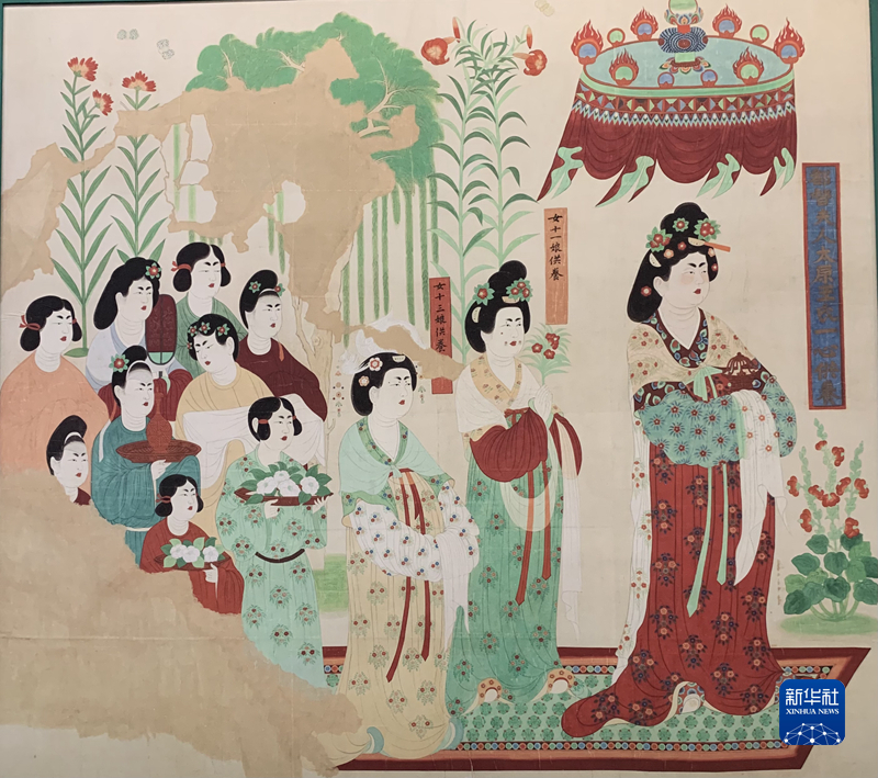 《都督夫人禮佛圖》復(fù)制品(段文杰臨?。?。新華社記者 張玉潔 攝