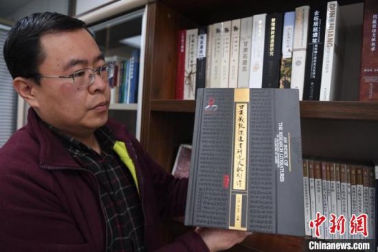 12月31日,甘肅教育出版社副社長(zhǎng)白鑫展示近期出版發(fā)行的《甘肅藏敦煌遺書(shū)研究文獻(xiàn)引得》?!钇G敏 攝