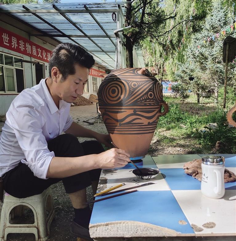 甘肅省境內(nèi)有著極為豐富的彩陶遺存,如大地灣文化、仰韶文化、馬家窯文化、齊家文化、四壩文化、辛店文化等。臨夏是甘肅彩陶出土最豐富的地區(qū),也是史前文化研究成果最顯赫的地區(qū)之一。考古發(fā)現(xiàn)表明,早在幾萬年前的舊石器時代晚期,臨夏就有人類活動的足跡。進入新石器時代以后,以馬家窯文化為代表的農(nóng)業(yè)部族開啟了史前文明的曙光,青銅時代的齊家、辛店等文化進一步創(chuàng)造了輝煌的文化成就。臨夏彩陶從新石器時代延續(xù)到青銅時代,以器型優(yōu)美、紋飾絢麗、色彩鮮艷、圖案多樣而久負盛名,故而臨夏又有“彩陶之鄉(xiāng)”的美譽。那么,除了博物館,還有沒有其他方式去了解久負盛名的彩陶文化呢?近日,記者采訪了來自臨夏的史前彩陶鑒定家和修復家,也是彩陶仿制技藝的非物質(zhì)文化遺產(chǎn)傳承人馬黑麥,他讓記者沉浸式體驗了彩陶文化的獨特魅力。