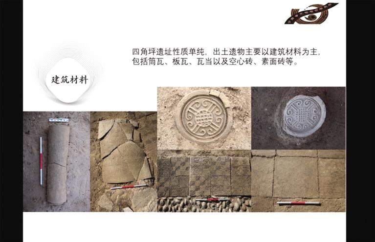 此前勘探發(fā)現(xiàn),四角坪遺址外圍為夯土圍墻,中部為面積約900多平方米的方形夯土臺基,臺基頂部四周有回廊式建筑。經(jīng)過兩年的發(fā)掘,摸清了夯土臺基的形制,發(fā)現(xiàn)了臺基中心較特殊的半地穴式建筑,以及臺基外圍第一排附屬建筑。每組建筑之間有寬約一米的夯土通道連接,建筑周圍散落各種建筑構(gòu)件,如板瓦、筒瓦、瓦當(dāng)、空心磚等。通過考古發(fā)掘顯示,四角坪遺址建筑體量巨大,等級分明,格局規(guī)整對稱,是秦帝國時期代表國家意志的禮制性建筑群。
