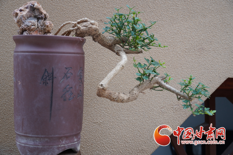 另一家店門(mén)口,擺放著造型各異的盆景。