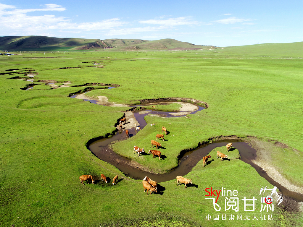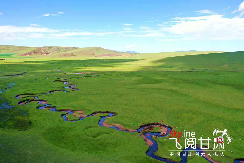 盛夏,是岷縣狼渡灘濕地草原一年中最好的時(shí)節(jié),這里天藍(lán)水清,牛肥馬壯,山花爛漫,像是鑲嵌在大地上的一顆綠色明珠,九曲十八彎的狼渡溪流蜿蜒其中,美不勝收。