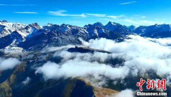 今年截至11月4日,中國東北地區(qū)大部、新疆、青海、西藏、內(nèi)蒙古、甘肅等地都已經(jīng)進(jìn)入氣象意義上的冬季。圖為薄雪覆蓋山巒和林區(qū)。