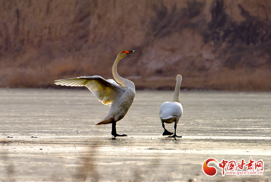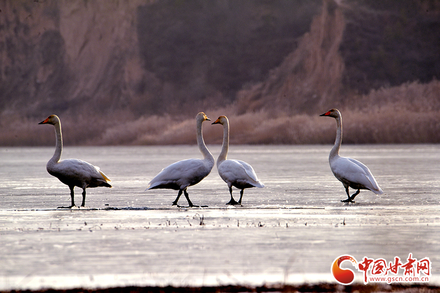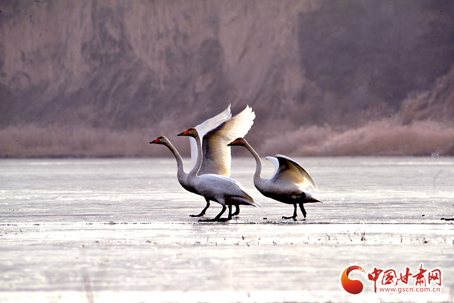 【隴拍客】平?jīng)鲮o寧:白天鵝組團“光臨”懸鏡湖