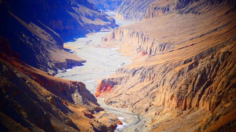 在漫漫歷史長河中,馬營河大峽谷經(jīng)過風吹日曬,在祁連山下形成了陡峭突兀的深溝險坡。大峽谷內(nèi),清澈見底的河水順著蜿蜒小道而下,令人嘆為觀止。馬營河大峽谷集雄、奇、險、秀為一體,峽谷底部清溪流淌,峽谷盡頭雪山聳立,平坦的崖頂云霧迷蒙,整個畫面壯觀雄偉,可以說,馬營河大峽谷可以與美國科羅拉多大峽谷相媲美。
