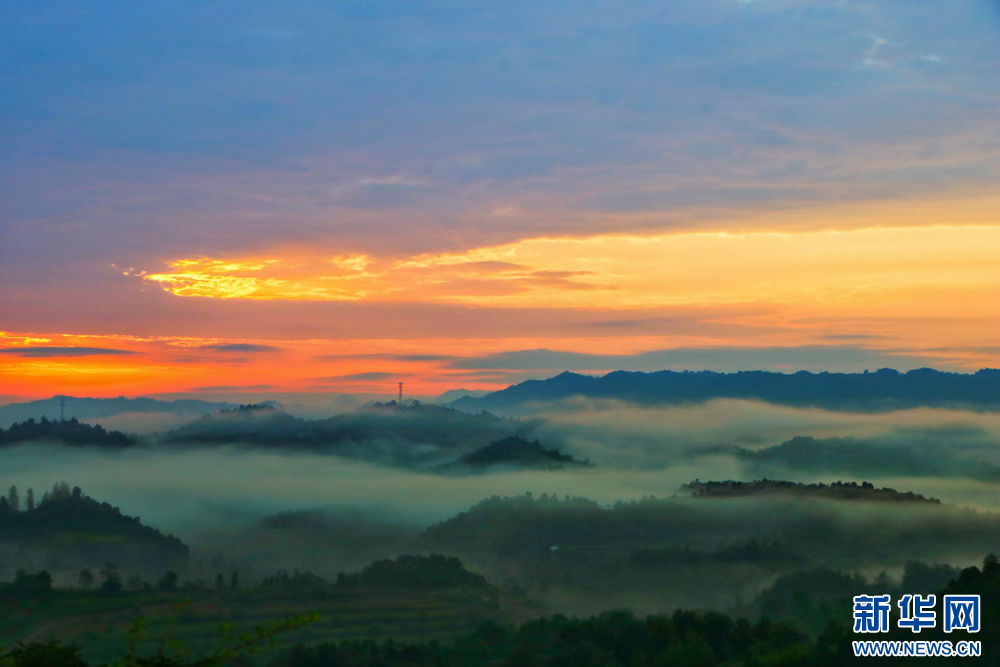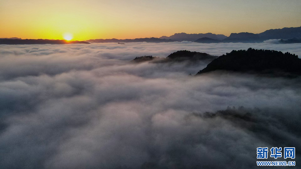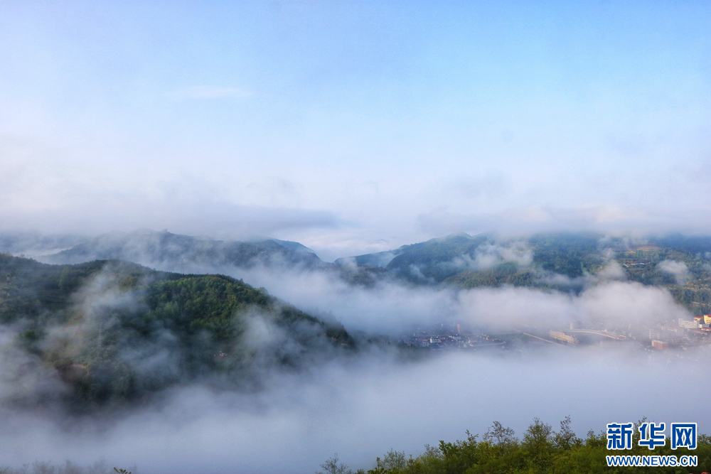 近日,甘肅省隴南市兩當(dāng)縣上空云霧繚繞、煙波浩渺,縣城、山峰在霧海中若隱若現(xiàn),陽光從云霧間掠過,勾勒出一幅幅如夢如幻的美麗畫卷。新華網(wǎng)發(fā)(楊曉 攝)