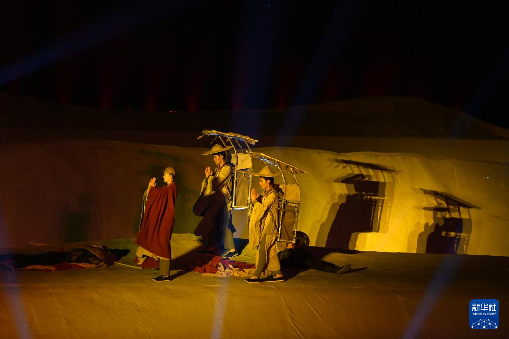 今年以來,脫胎于敦煌文化的洞窟沉浸式體驗劇《樂動敦煌》、室內(nèi)情景體驗劇《又見敦煌》、沙漠實景演出《敦煌盛典》和中國殘疾人藝術團情景音畫劇《千手千眼》四場劇目在絲路名城甘肅敦煌同步上演,劇目將敦煌歷史底蘊、服飾文化、樂舞文化等生動融合,為游客呈現(xiàn)出精彩絕倫的敦煌文化視覺盛宴,深受中外游客喜愛。截至8月10日,四大劇目今年已累計演出1175場次,觀看游客突破66萬人次。其中,《敦煌盛典》以敦煌鳴沙山月牙泉為背景,將沙漠景觀與現(xiàn)代舞美結(jié)合,將墻體燈光融入實景演出,講述了一段發(fā)生在古絲綢之路重鎮(zhèn)敦煌的愛情故事,展示了敦煌的歷史文化及人文風貌。