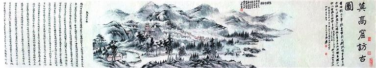 民國初年,張維返回蘭州之后,仍然念念不忘敦煌經卷,曾三赴河西考察敦煌莫高窟。1940年,張維第三次考察敦煌莫高窟返回途經武威時,前往拜訪好友、甘肅近代著名書畫家范振緒,為其講述敦煌莫高窟的坎坷境遇與現(xiàn)狀。在交流中,張維請范振緒繪制《敦煌訪古圖》畫卷。1941年,范振緒繪制完成之后,張維將此圖帶回蘭州,并邀請張大千、于右任、高一涵、馮國瑞、曹經沅等著名詩人題詠。