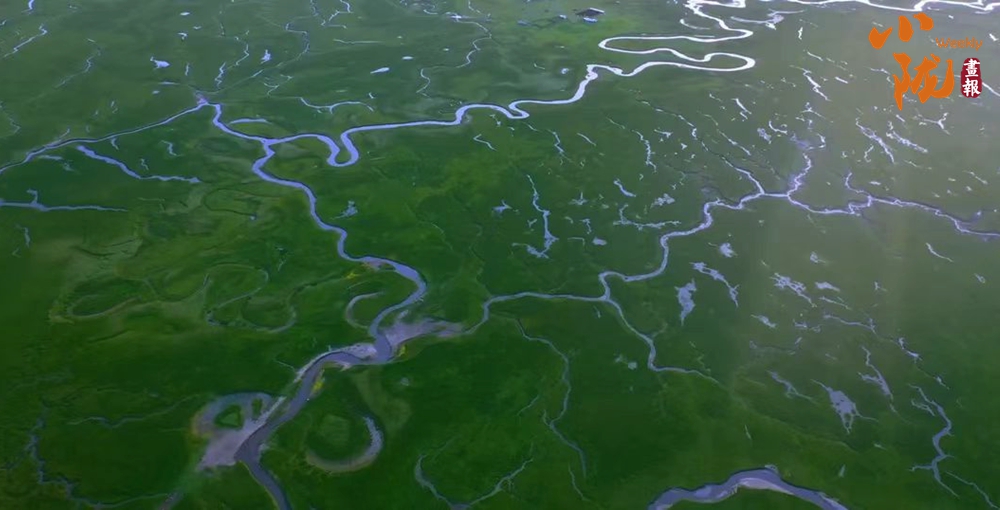 一望無際的濕地、草原穿上土黃色的外套,迎接最冬日的陽光。星星點點的冰凌閃閃發(fā)光,如同千萬顆鉆石鑲嵌在河水中?!?/p>