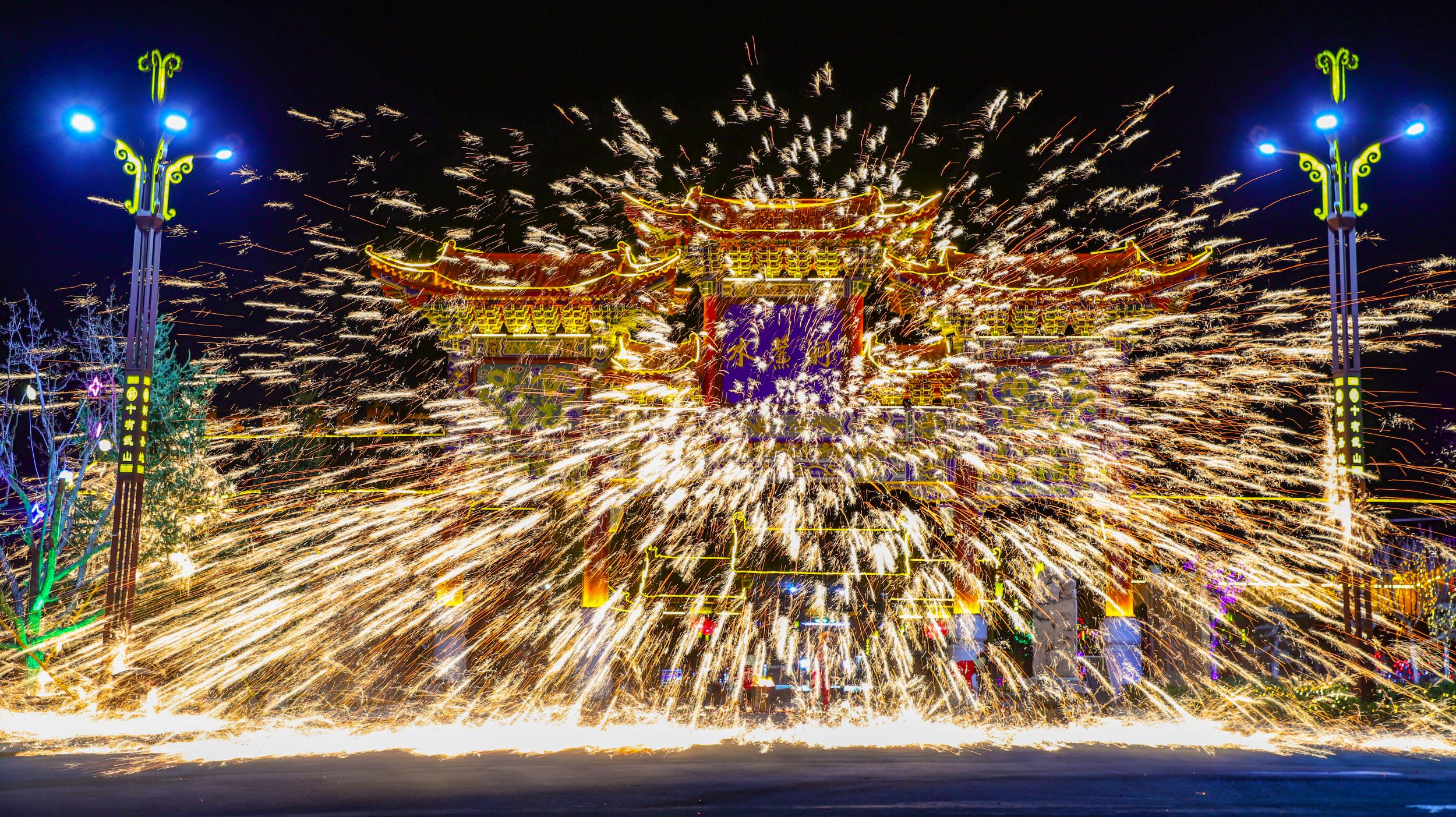 非遺絕技“打鐵花”點靚水簾洞景區(qū)不夜天