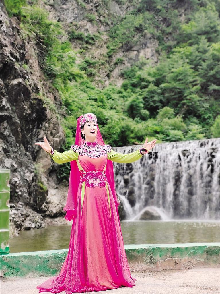 花兒歌手馬紅蓮在臨夏市牡丹廣場(chǎng)唱花兒