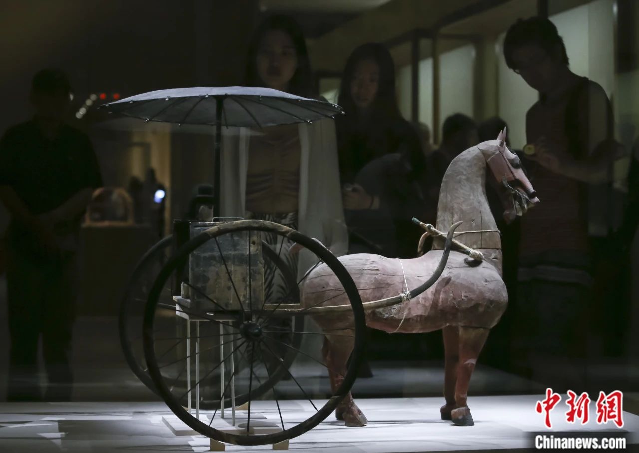 “絲路孔道——甘肅文物菁華展”在中國國家博物館舉行,展覽展出西漢彩繪木軺車。賈天勇 攝