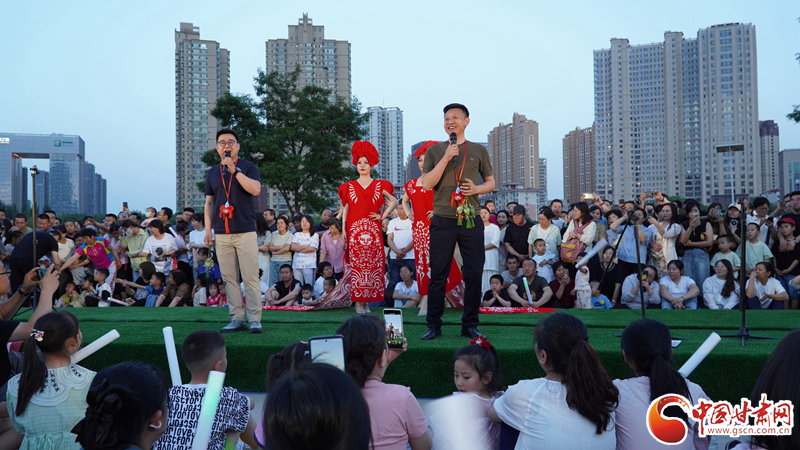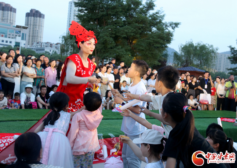 來自鎮(zhèn)原縣文化館的工作人員身著剪紙服飾,為現(xiàn)場觀眾送上慶陽香包,向觀眾們展示慶陽獨特的鄉(xiāng)土風(fēng)情。