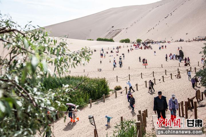 6月10日,敦煌市鳴沙山下,一場(chǎng)以敦煌市舞龍隊(duì)為首的20個(gè)健身舞蹈隊(duì)為廣大市民和游客獻(xiàn)上一臺(tái)臺(tái)精彩的舞蹈盛宴,吸引了眾多游客圍觀、拍照,在敦煌大漠度過(guò)一個(gè)難忘的端午節(jié)。王斌銀 攝
