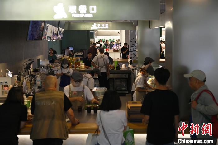 6月19日,甘肅省博物館藝術(shù)生活館在甘肅蘭州開館。該館是甘肅省博物館打造的一處復(fù)合型高價(jià)值文化空間,融合了咖啡、烘焙、展覽、藝術(shù)書店、文創(chuàng)銷售等多樣化業(yè)態(tài)。圖為游客在咖啡區(qū)排隊(duì)等待。中新社記者 李亞龍 攝