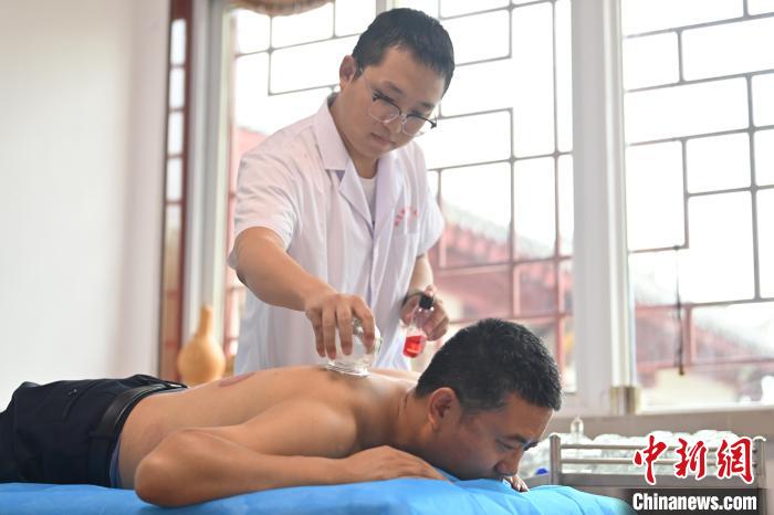 7月16日,甘肅省平?jīng)鍪徐`臺(tái)縣皇甫謐針灸康養(yǎng)館內(nèi),工作人員對(duì)患者進(jìn)行拔火罐。2006年,靈臺(tái)皇甫謐針灸術(shù)入選第一批甘肅省非物質(zhì)文化遺產(chǎn)名錄。靈臺(tái)作為皇甫謐故里,當(dāng)?shù)孛癖姺浅UJ(rèn)可中醫(yī)康養(yǎng),針灸、拔火罐、推拿、葫蘆灸、火龍灸(督脈灸)等中醫(yī)特色療法受到了很多人的青睞,當(dāng)?shù)毓俜揭餐ㄟ^(guò)舉辦大型節(jié)會(huì)等助推中醫(yī)康養(yǎng)產(chǎn)業(yè)發(fā)展。 皇甫謐是針灸醫(yī)學(xué)鼻祖,其《針灸甲乙經(jīng)》已在多個(gè)國(guó)家被廣泛傳播應(yīng)用。  中新社記者 李亞龍 攝