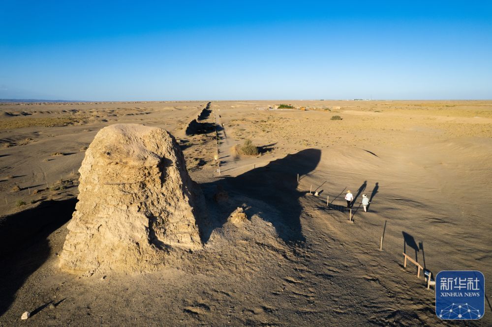 玉門關(guān)外,大漠戈壁,漢長城遺址巍然屹立,訴說著歷史上的邊塞風云和絲路滄桑。