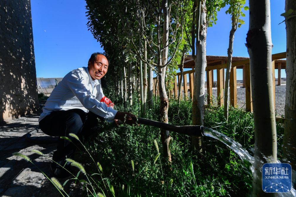 后來,得益于敦煌加強文保力量,他的妻子聞春瑜也成為一名文保員。從此,他們夫妻二人便扎根大漠,像古代戍邊戰(zhàn)士一樣守護長城。他們在房前屋后種下白楊樹,澆灌出一片菜園,為生活增添點點綠意與希望。