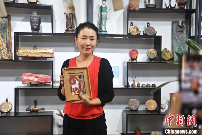 8月20日,甘肅敦煌莫高里工匠村內(nèi),學(xué)員展示研學(xué)成果。工匠村開設(shè)了泥板畫、彩繪、雕塑制作、剪紙、農(nóng)耕體驗(yàn)等課程,現(xiàn)已發(fā)展成為一個(gè)集敦煌文化講堂、壁畫書法研習(xí)、美術(shù)設(shè)計(jì)、彩塑制作教學(xué)、篆刻藝術(shù)、傳統(tǒng)釀酒體驗(yàn)、農(nóng)業(yè)產(chǎn)業(yè)發(fā)展等于一體的多功能實(shí)訓(xùn)基地。中新社記者 李亞龍 攝