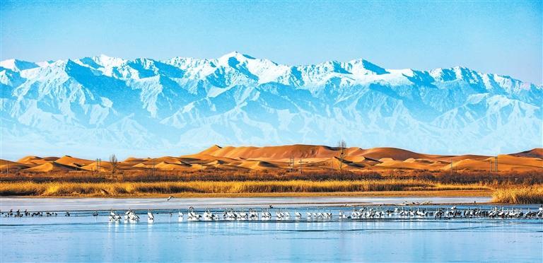 流經(jīng)敦煌、酒泉的疏勒河,是河西走廊第二大內(nèi)陸河,是中國大江大河當(dāng)中自西往東流淌的代表,源頭也在崗格爾肖合力雪山。是由祁連山系的走廊南山、托來南山、疏勒南山和大雪山的冰川融水匯流而成。經(jīng)過了100多公里匯集,在抵達(dá)甘肅酒泉的昌馬峽谷的時(shí)候,已經(jīng)成為一條從群山之中奔涌而出的大河。