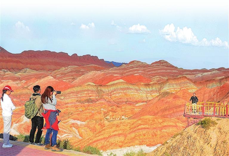 游客在張掖七彩丹霞景區(qū)參觀游覽。王將