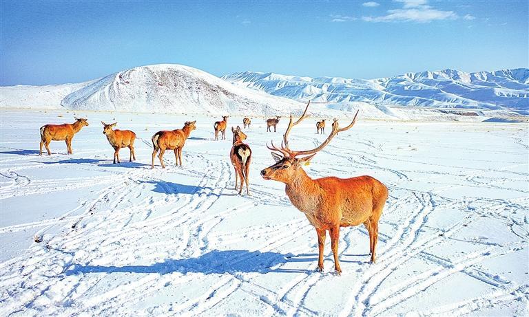 肅南縣神鹿公園銀裝素裹,馬鹿歡鳴。田蹊