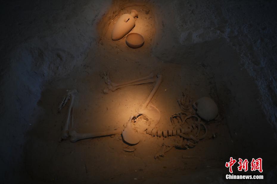 ?。保霸拢玻踩?,2024青年漢學家研修計劃甘肅班團隊22個國家的青年漢學家,走進甘肅省天水市秦安縣大地灣遺址參觀并進行專題研修。大地灣遺址是新石器時代大型聚落遺址,出土了中國乃至世界上最早的彩陶文化、最早的文字符號、種植生產(chǎn)了中國第一批糧食品種黍、出現(xiàn)了最早的宮殿式建筑、發(fā)明了世界最早的水泥地面、創(chuàng)造了最早的繪畫作品——F411地畫。圖為大地灣博物館墓葬701。中新社記者 李亞龍 攝