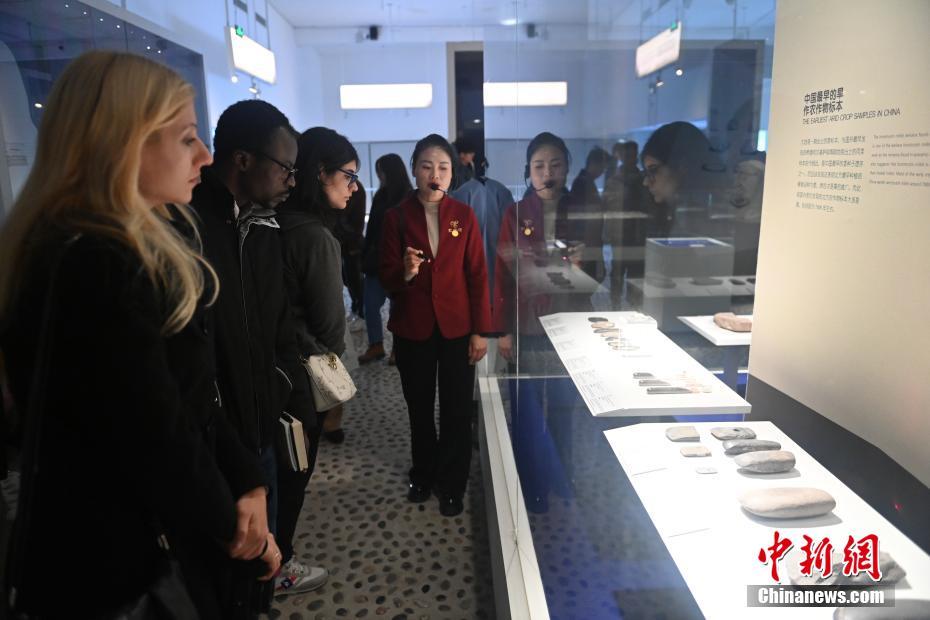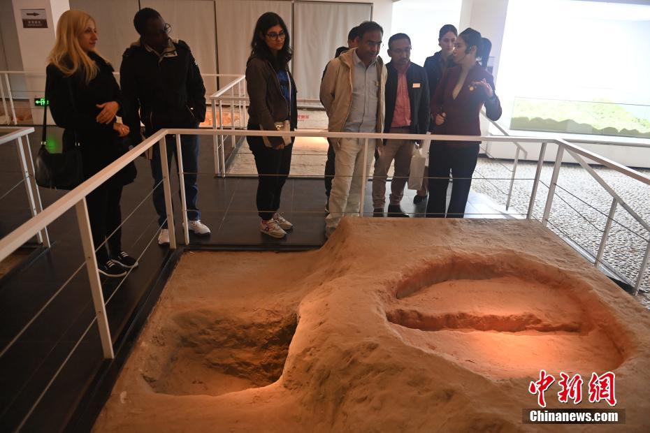 ?。保霸拢玻踩眨玻埃玻辞嗄隄h學家研修計劃甘肅班團隊22個國家的青年漢學家,走進甘肅省天水市秦安縣大地灣遺址參觀并進行專題研修。大地灣遺址是新石器時代大型聚落遺址,出土了中國乃至世界上最早的彩陶文化、最早的文字符號、種植生產(chǎn)了中國第一批糧食品種黍、出現(xiàn)了最早的宮殿式建筑、發(fā)明了世界最早的水泥地面、創(chuàng)造了最早的繪畫作品——F411地畫。圖為22國青年漢學家參觀大地灣博物館。中新社記者 李亞龍 攝