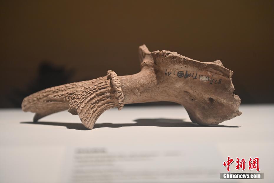 ?。保霸拢玻踩眨玻埃玻辞嗄隄h學家研修計劃甘肅班團隊22個國家的青年漢學家,走進甘肅省天水市秦安縣大地灣遺址參觀并進行專題研修。大地灣遺址是新石器時代大型聚落遺址,出土了中國乃至世界上最早的彩陶文化、最早的文字符號、種植生產(chǎn)了中國第一批糧食品種黍、出現(xiàn)了最早的宮殿式建筑、發(fā)明了世界最早的水泥地面、創(chuàng)造了最早的繪畫作品——F411地畫。圖為大地灣博物館展品梅花鹿角。中新社記者 李亞龍 攝