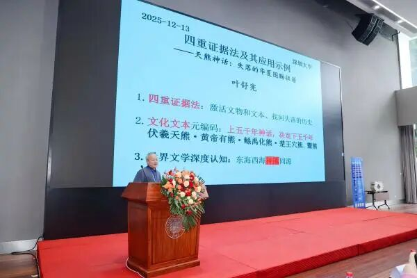 本次中國學(xué)術(shù)評價(jià)論壇主題為“中國哲學(xué)社會科學(xué)原創(chuàng)研究方法與自主知識體系建構(gòu)”,由中國人民大學(xué)書報(bào)資料中心、中國哲學(xué)社會科學(xué)自主知識體系數(shù)字創(chuàng)新平臺(學(xué)術(shù)世界)等多家單位主辦,葉舒憲教授作“四重證據(jù)法及其應(yīng)用示例”的主旨報(bào)告。這是對葉教授繼2024年獲頒“中國比較文學(xué)終身成就紀(jì)念證書”后的再次肯定,表彰其近四十年來持續(xù)在跨學(xué)科方法論創(chuàng)新及文明探源研究領(lǐng)域做出的卓越貢獻(xiàn)。