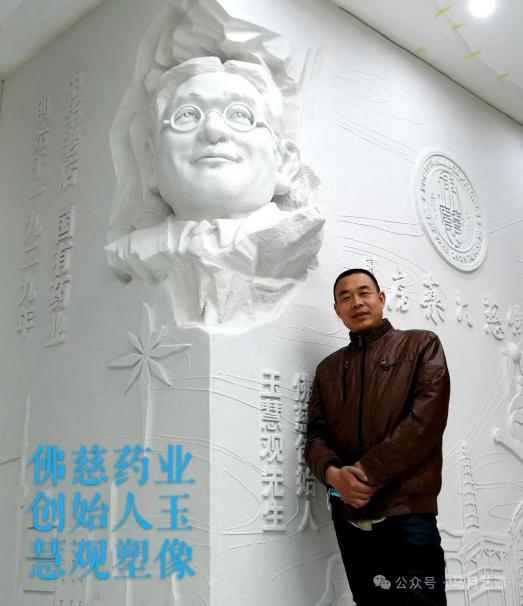 2020年所作,巧妙融圓雕與浮雕于一體,在轉(zhuǎn)角處營(yíng)造頭像破壁而出的視覺詩(shī)意。分體制作,嚴(yán)絲合縫,最終以真石漆噴砂成色,莊重中見靈動(dòng),至今仍是馬先生時(shí)常駐足回望的滿意之作。
