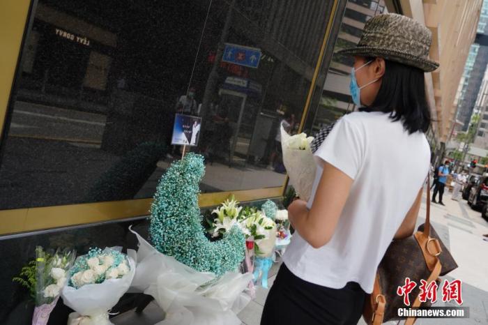 資料圖:2021年4月1日,歌迷和影迷來到香港文華東方酒店外獻(xiàn)上鮮花,擺上遺像,悼念張國(guó)榮。 中新社記者 張煒 攝