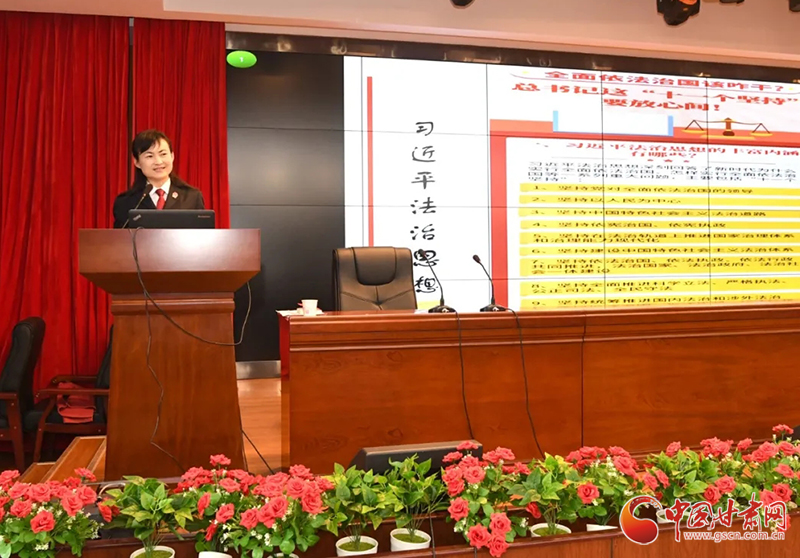 中國甘肅網(wǎng)12月4日訊(本網(wǎng)記者 李紅軍)12月4日是第七個(gè)“國家憲法日”。今天下午,甘肅省法院少年法庭的法官走進(jìn)蘭州市第六十四中學(xué),開展以“深入學(xué)習(xí)宣傳習(xí)近平法治思想、大力弘揚(yáng)憲法精神”為主題的憲法進(jìn)校園宣傳活動(dòng)。該校300余名師生代表在學(xué)術(shù)報(bào)告廳聆聽了宣講報(bào)告,兩名基層法院人民陪審員應(yīng)邀參加了活動(dòng)。