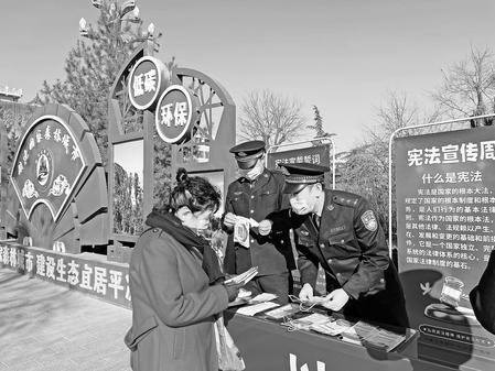 12月3日,定西監(jiān)獄組織青年民警普法宣傳隊(duì)來到汽車站社區(qū)開展憲法宣傳進(jìn)社區(qū)活動(dòng)。隊(duì)員向市民發(fā)放憲法手冊和宣傳彩頁,宣傳憲法內(nèi)容,強(qiáng)化市民的法治意識(shí)。