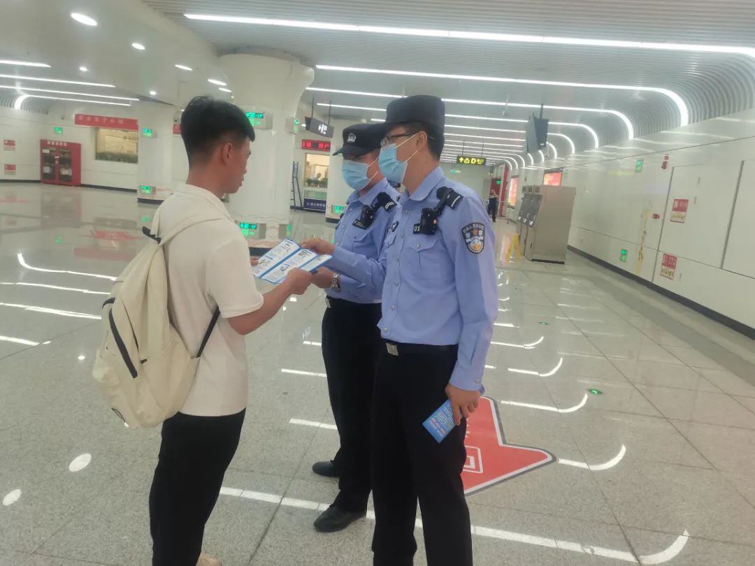 依托地鐵主陣地,發(fā)揮地鐵日均60萬客流優(yōu)勢,在27個地鐵站懸掛反電詐、防范打擊養(yǎng)老詐騙橫幅標(biāo)語;在全線網(wǎng)絡(luò)電視屏、車載電視、導(dǎo)乘屏滾動播放反電詐宣傳視頻,積極營造宣傳氛圍,提高群眾識詐、反詐意識