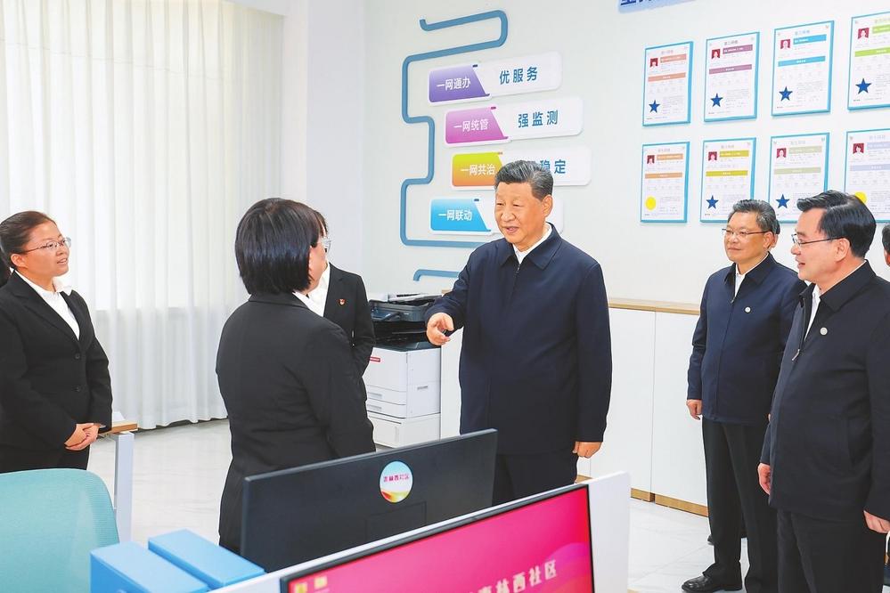 9月10日至13日,中共中央總書記、國(guó)家主席、中央軍委主席習(xí)近平在甘肅考察。這是11日下午,習(xí)近平在蘭州市公安局安寧分局劉家堡派出所考察。新華社記者燕雁