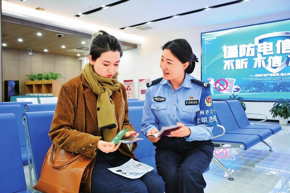 12月4日上午,蘭州市公安局出入境辦證大廳輔警方海燕向市民介紹出入境業(yè)務(wù)簡化辦理流程等事項。新甘肅·甘肅法治報記者張瑞軍攝