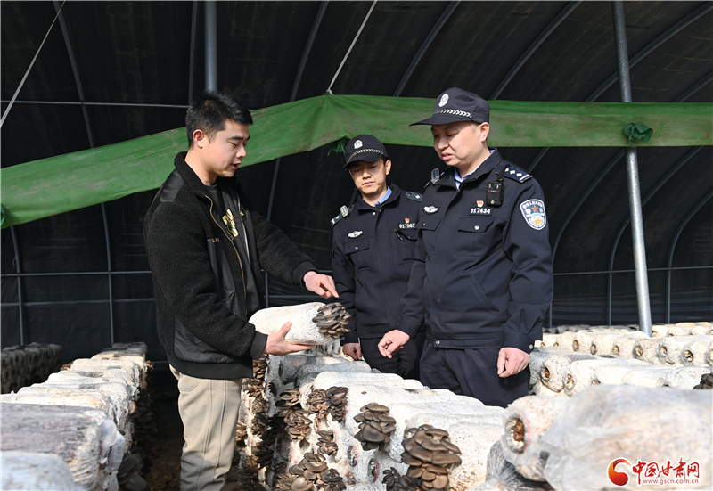 在西固區(qū)新城鎮(zhèn)青石金庭生態(tài)產(chǎn)業(yè)園,西固分局新城派出所民警宋振浩正在和蘑菇種植戶郭先生拉家常,詳細(xì)了解生產(chǎn)經(jīng)營(yíng)情況,詢問(wèn)實(shí)際困難和需求。