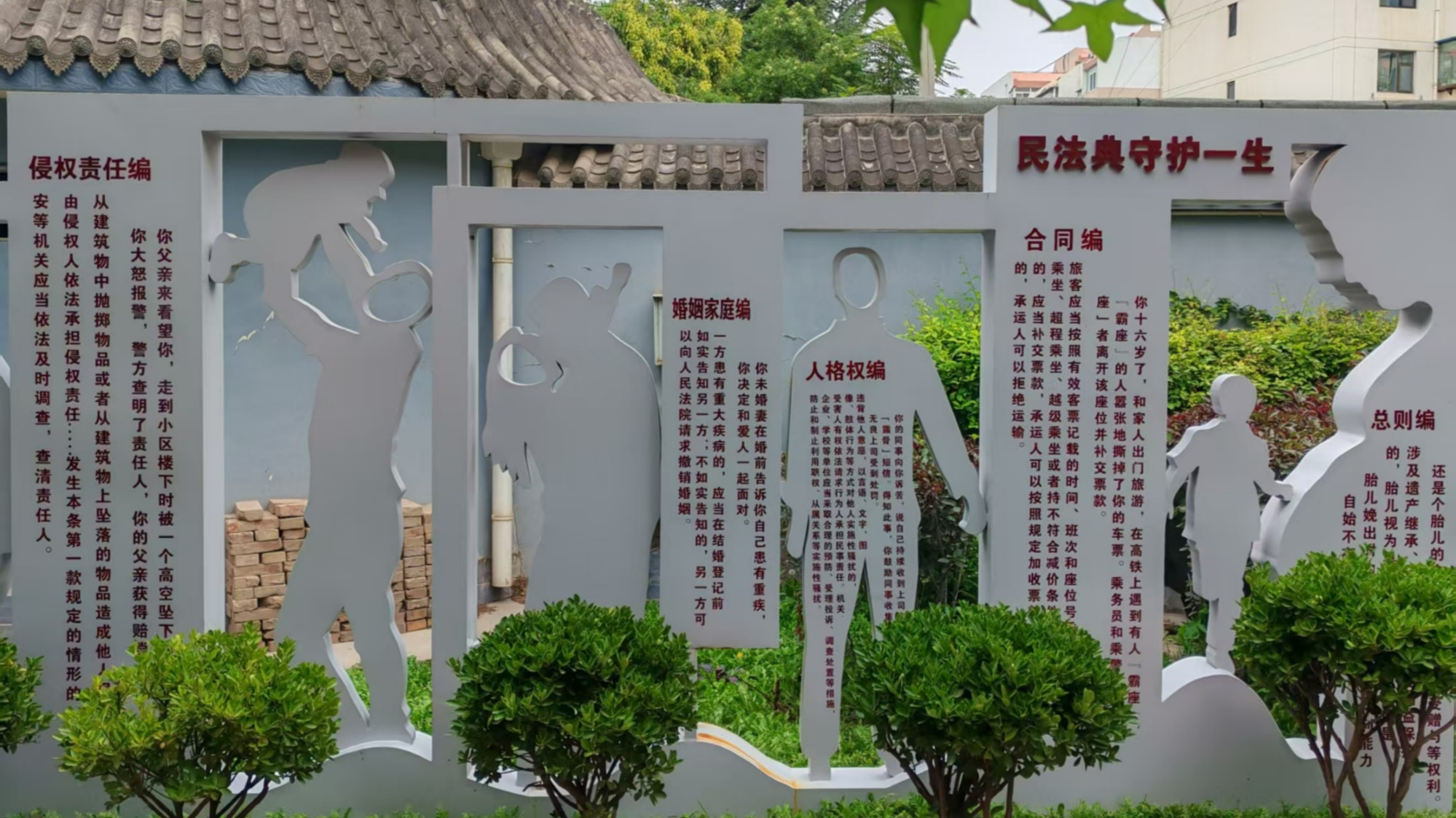 這座占地1900平方米的法治主題公園,將《中華人民共和國網(wǎng)絡(luò)安全法》《中華人民共和國數(shù)據(jù)安全法》融入游園場景:連接WiFi需答法治題,200余個垃圾桶印著“守法更有序”標(biāo)語,藍(lán)色普法區(qū)掃碼可看法律發(fā)展歷程,“逛公園”與“學(xué)法律”自然融合。