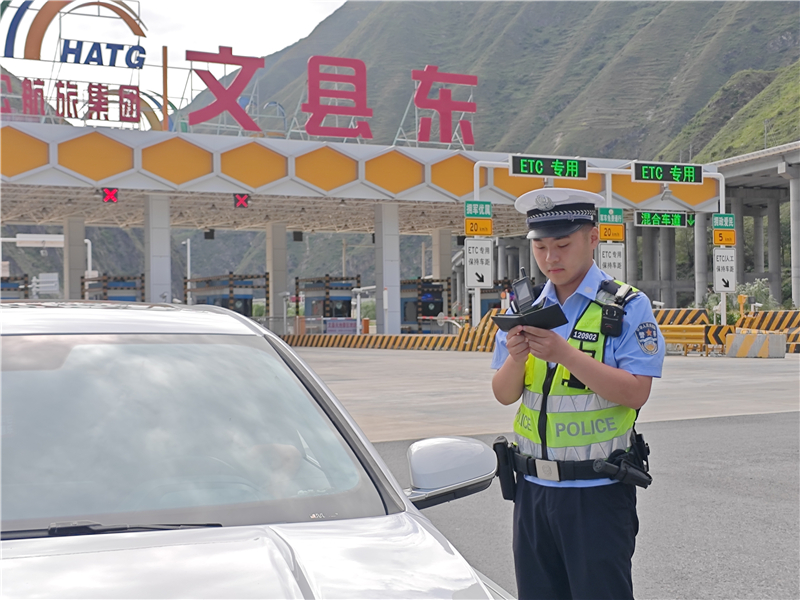 8月21日下午,車輛駛出高樓山隧道1公里后在文縣東收費站下高速,隴南市公安局交通管理支隊高速公路八大隊的民警任濤和同事們正在開展定點勤務。