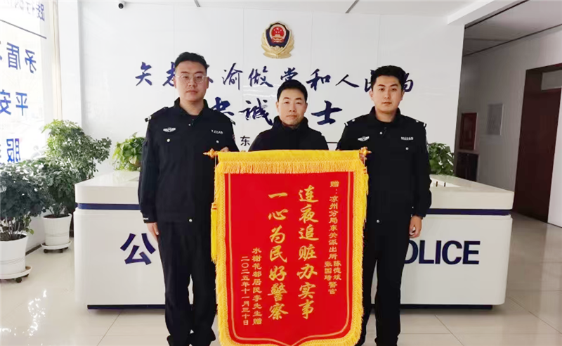 拿到失而復(fù)得的手機(jī),李先生激動不已:“真沒想到你們能連夜幫我找回來,你們太負(fù)責(zé)任了!”隨后,他也送來一面寫有“連夜追贓辦實(shí)事,一心為民好警察”的錦旗,向民輔警的盡心盡責(zé)表達(dá)感謝。