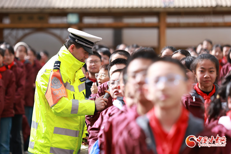 2月25日,蘭州市中小學(xué)開學(xué),學(xué)生們走進(jìn)校園,開始新學(xué)期學(xué)習(xí)生活,蘭州市公安局交管支隊城關(guān)大隊輔警在城關(guān)區(qū)水車園小學(xué)民勤街分校,為學(xué)生們講解交通安全知識。