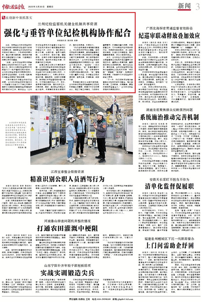 蘭州紀(jì)檢監(jiān)察機(jī)關(guān)健全機(jī)制共享資源 強(qiáng)化與垂管單位紀(jì)檢機(jī)構(gòu)協(xié)作配合