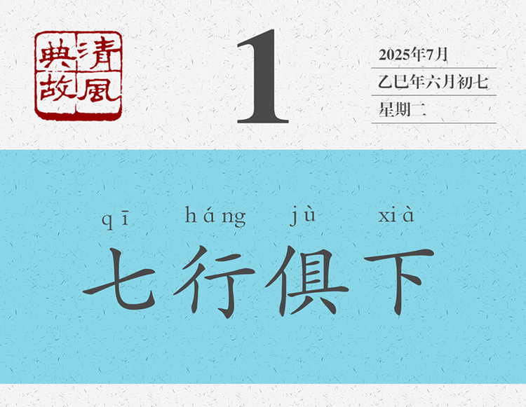 古代書策都是豎排,字自上而下,行自右而左,七行一起往下讀,這不僅需要一心多用的特殊技能,也需要過目不忘的記憶力。后世即以“七行俱下”來形容一個人讀書速度非???,閱讀能力特別強,也用來形容一個人天資超群,聰明過人?!段鍩魰?middot;卷十》中說到永明延壽禪師:“既冠不茹葷,日唯一食,持《法華經(jīng)》,七行俱下,才六旬,悉能誦之。”永明延壽禪師二十歲時就不吃葷食了,而且一天只吃一頓飯,手持《法華經(jīng)》,七行俱下,剛剛六十天,就能全部背誦了。