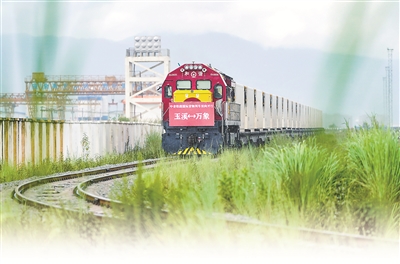 8月23日,前往老撾萬象的國際貨物列車駛出中老鐵路中國玉溪研和站。當日,中老鐵路國際貨物列車(玉溪—萬象)實現(xiàn)雙向開行。新華社記者 陳欣波 攝