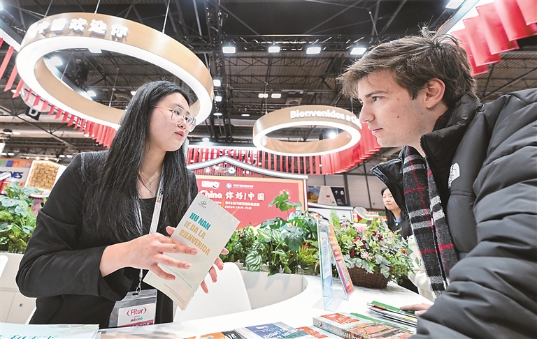 近年來,過境免簽政策持續(xù)擴(kuò)容、免稅購物政策不斷優(yōu)化、“即買即退”適用商店持續(xù)增加……得益于中國日益開放的舉措,越來越多外國游客在中國旅游、購物,感受更加開放包容、多元創(chuàng)新的中國。圖為1月21日至25日舉行的馬德里國際旅游展上,參觀者在中國展臺咨詢。新華社記者 程敏 攝