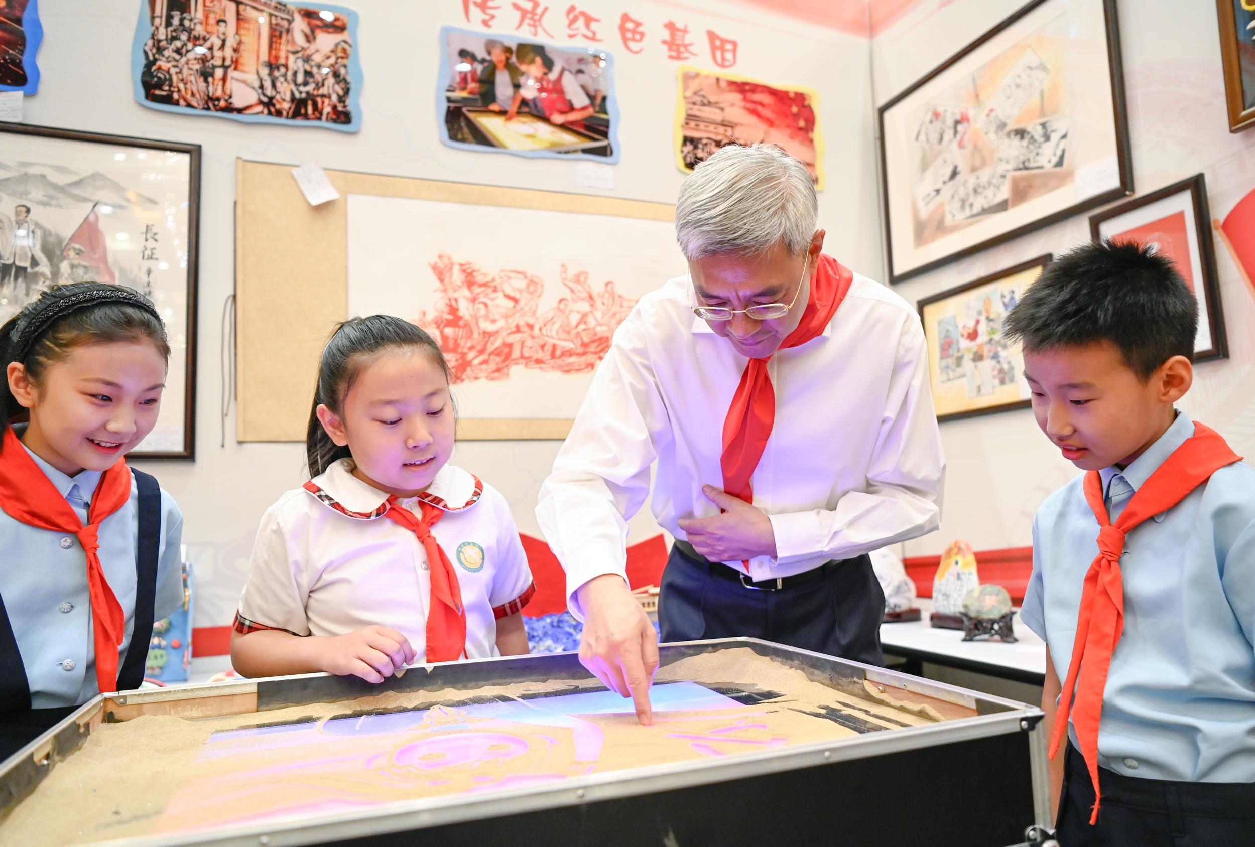 尹弘還參觀了“紅領(lǐng)巾心向黨慶祝建黨100周年”全省少先隊(duì)員優(yōu)秀作品展。